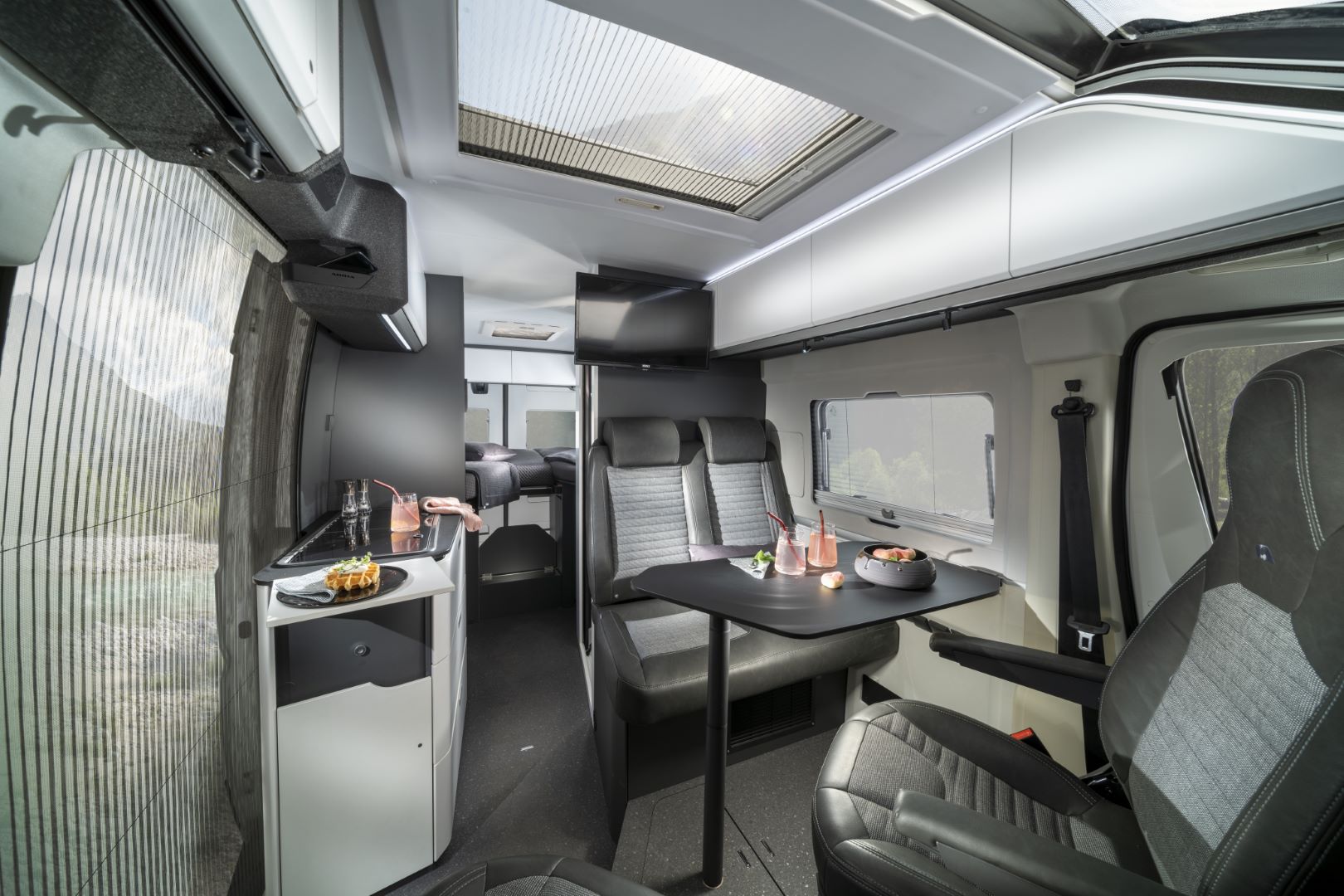 New Twin Supreme introduced open plan ‘cabin-loft’ interiors, and sun-roof panoramic window. It became the design leader, the go- to reference campervan.