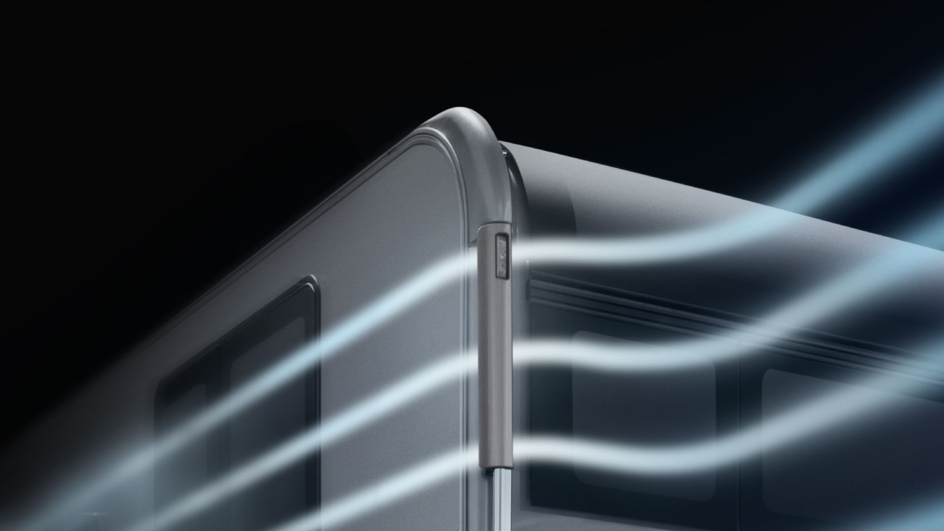 The requirements of safe towing and low fuel consumption had to be considered with this design. ''In proposing a flat wall, we proceeded from the fact that caravans of this size are towed by fairly large cars, i.e. often SUVs, which displace extensive quantities of air, so we assumed that the angle at the front wall was irrelevant. Instead of dealing with the aerodynamics of the caravan on its own, it was necessary to analyse the entire convoy, that is the both car and the trailer''. explains designer Matic Vihtelič.